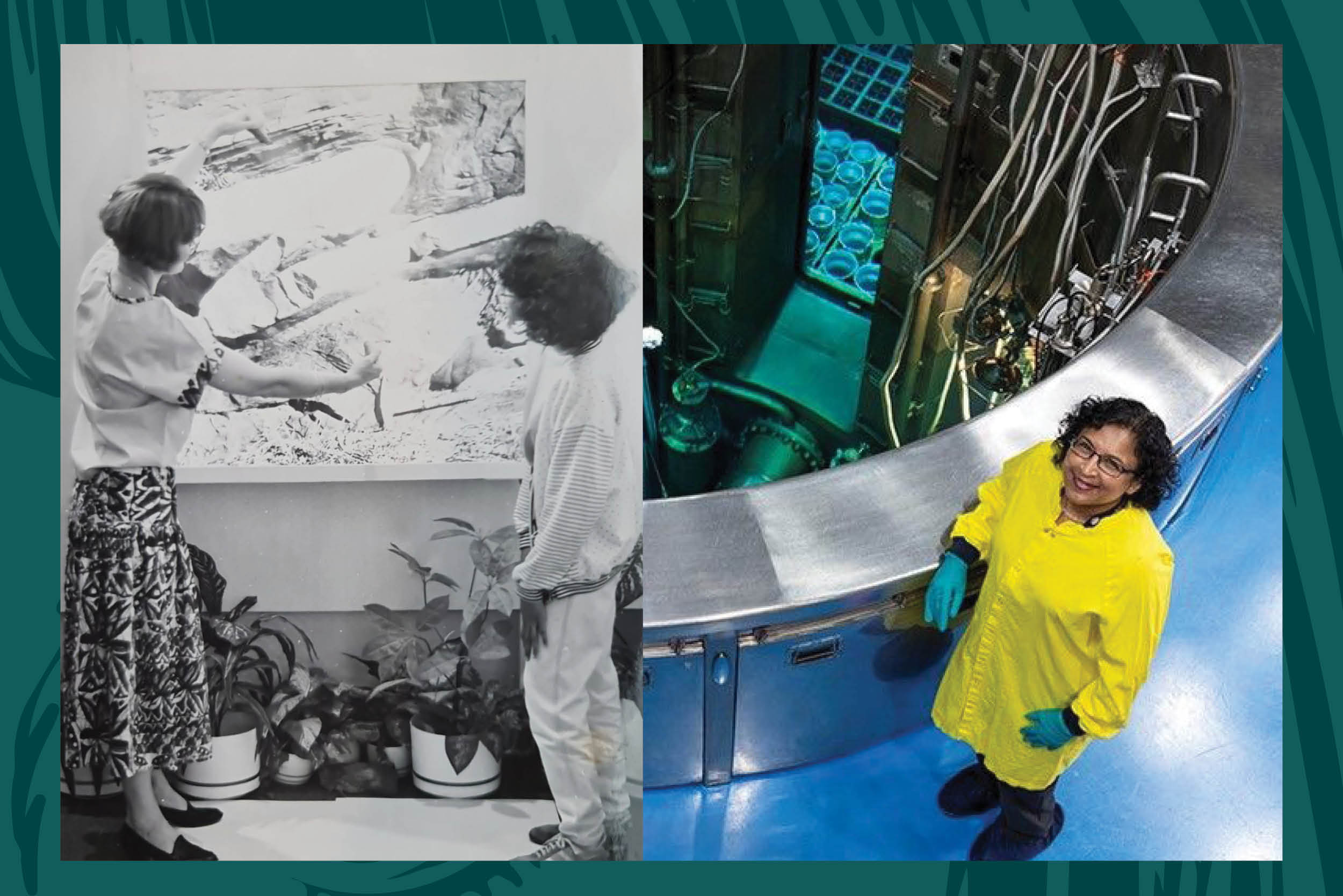 Eighteen-year-old Pamela at university, and 25 years later – leading the country’s only nuclear reactor at ANSTO